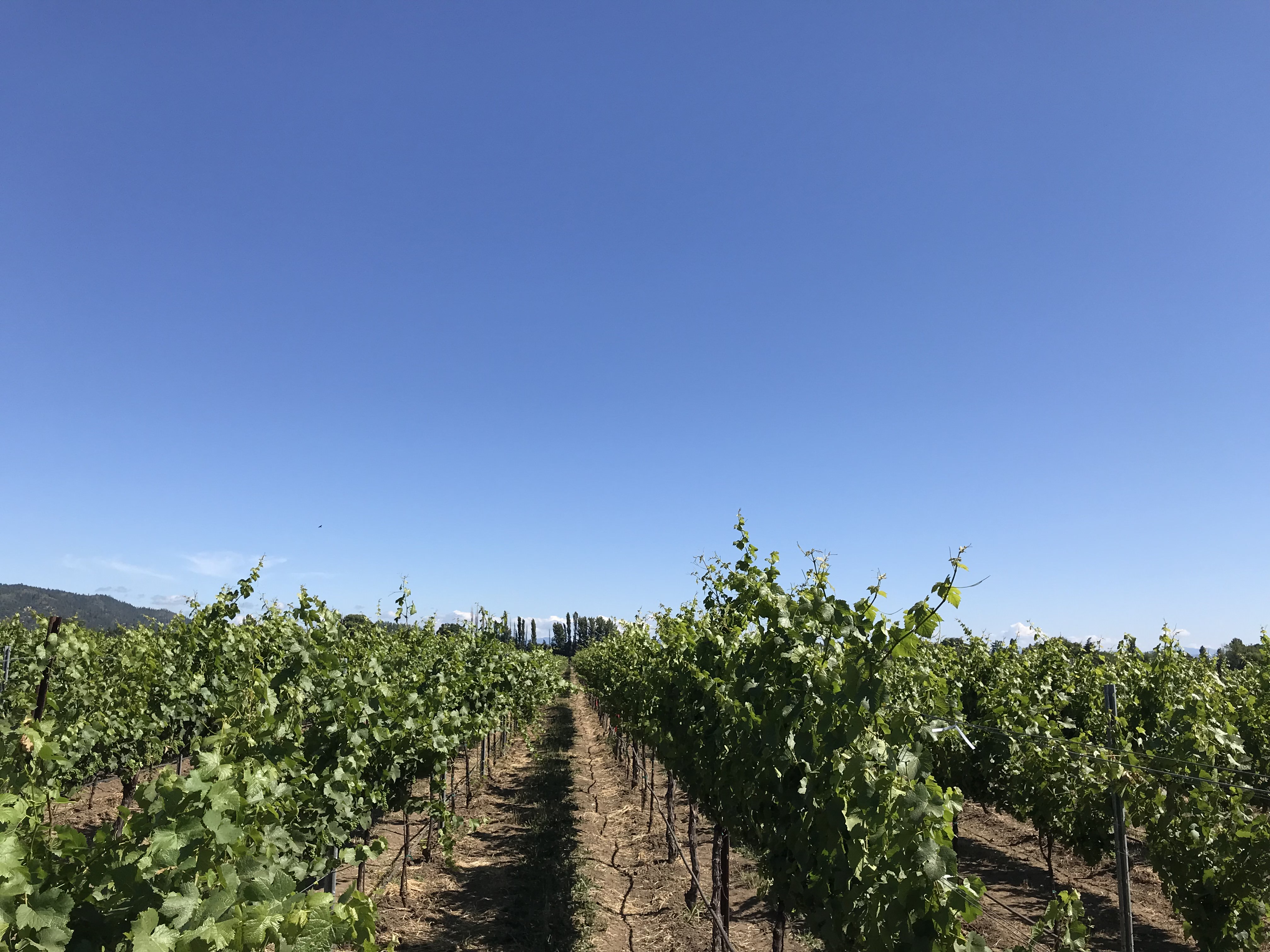Wednesday morning was when the fun really began. We all had to meet up at the station an hour earlier than normal so that we could head over to Cedars, one of our vineyards sites that I had not yet visited. The reason we went over so early in the morning was because at that vineyard site, it’s harvest time! At least for Pinot, which is what our research block consisted of. While we were out there, they had their mechanical harvester going. Essentially the mechanical harvester goes over the vines and hits the row of vines, sending vibrations through it that knock off the grapes. It was pretty cool to watch.